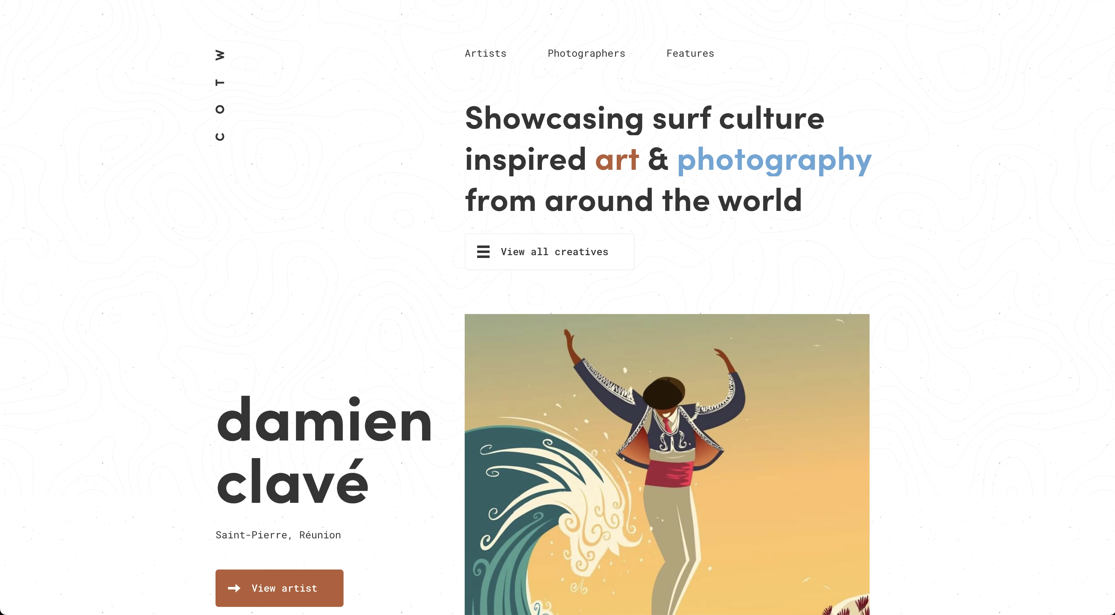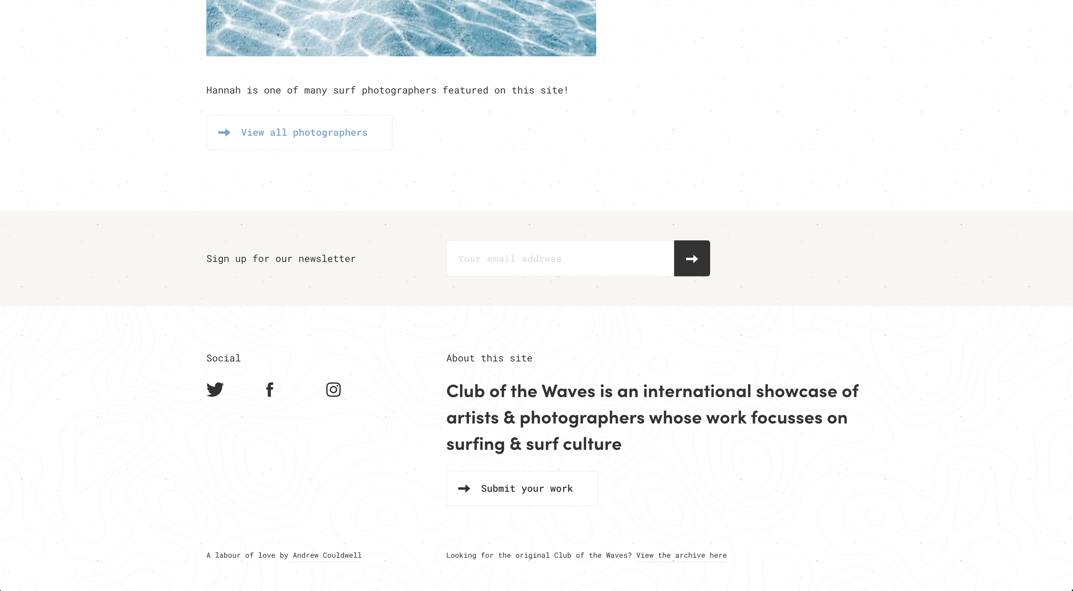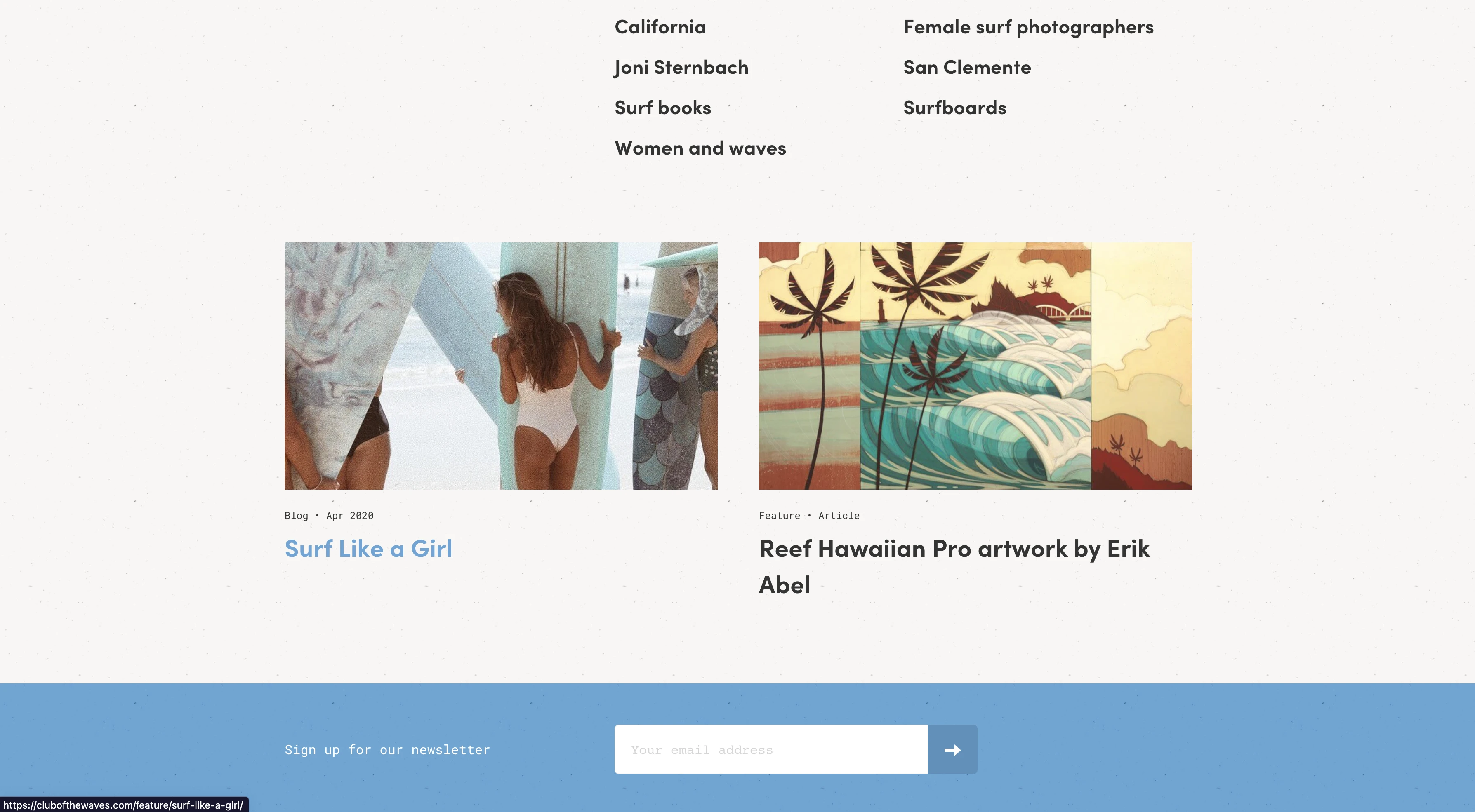 The purpose is to showcase art and photography; specifically, art and photography inspired by surf culture. The linear, grid-based layout of the site I think was created in effort to give the images (the art and photography in this case) the limelight.