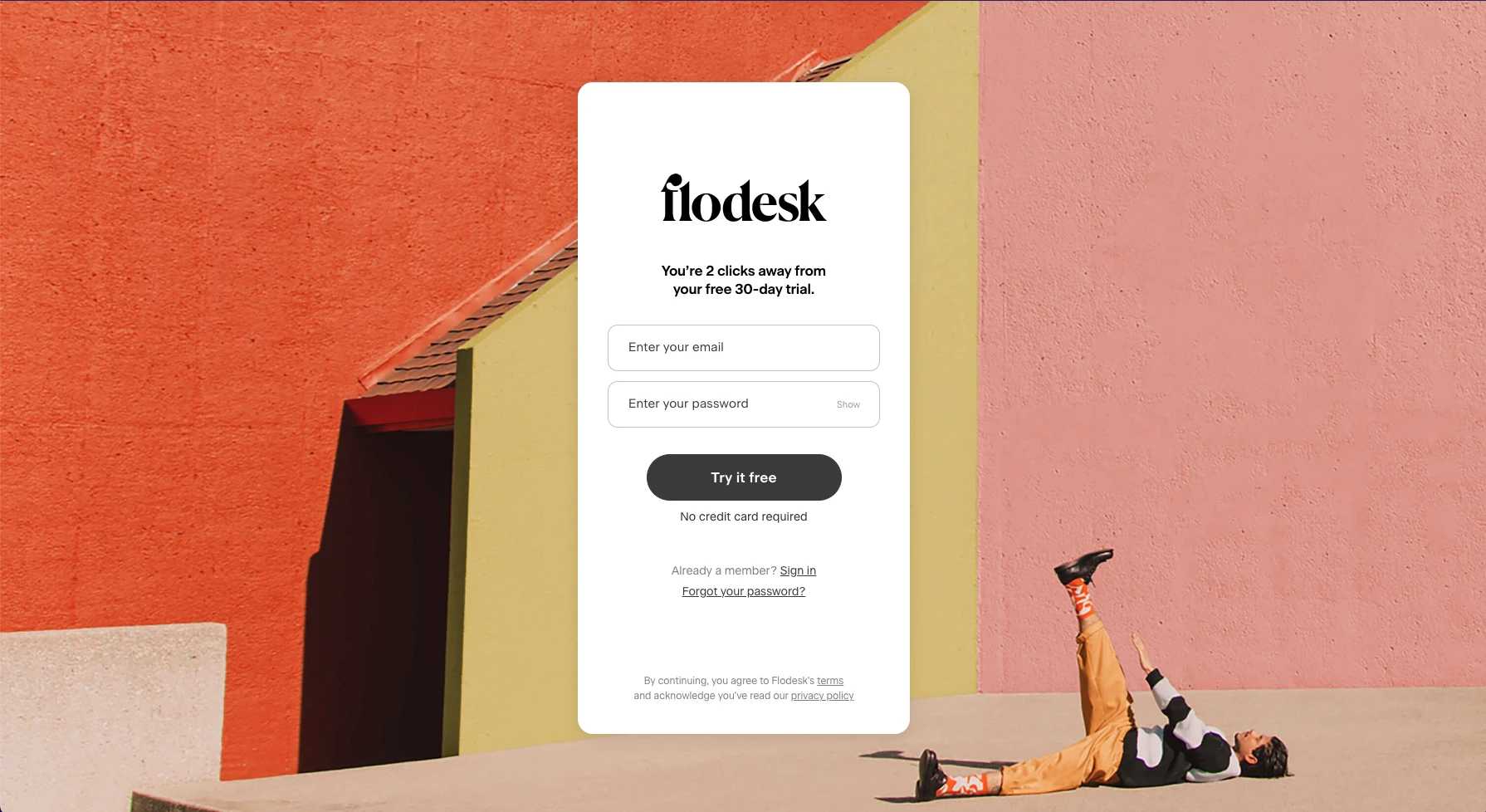 This design make me feel inadequate as a designer. But more than that, it is very inspring. It has an undeniable pull and makes me want to look at and consume beautiful designs. Not to sound corny, but it almost feels like a digital art gallery, which is probably a goal of the designers and product folks at flodesk. If so, job well done. It does a great job of making me want to emulate, copy, practice, etc. their design aethetic.