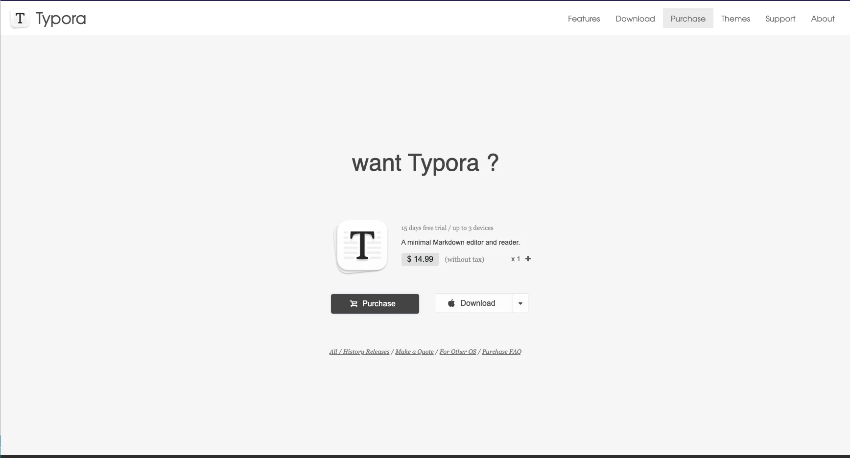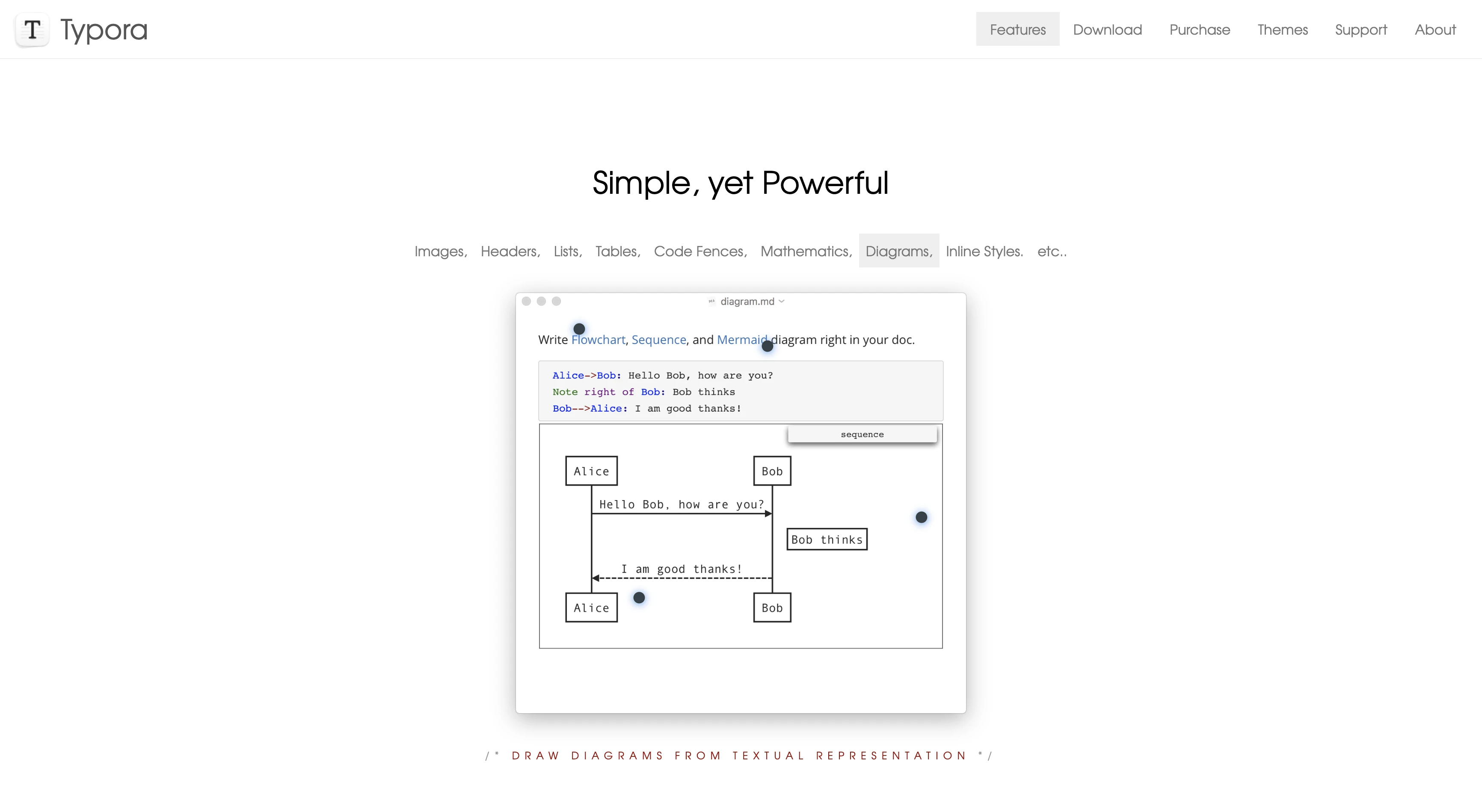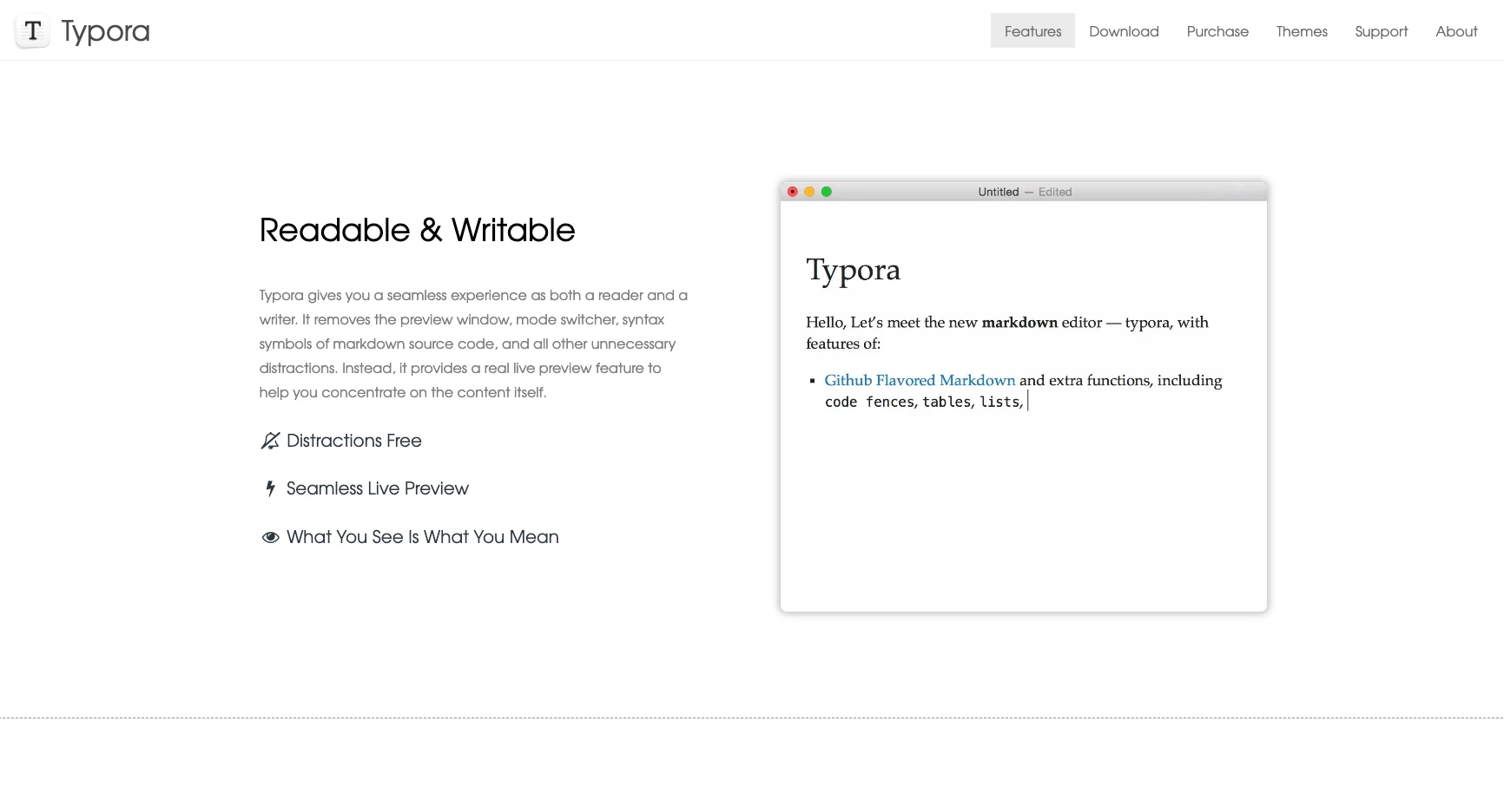 The simplicity and minimalism of Typora's site drew me in immediately. Because of its minimalism, typography has to be front and center. And it is apparent that it was given much consideration. While the screenshots of the app contain a serif font, the site uses a very round sans-serif. It is almost playful in nature but still conveys a serious tone. I am always impressed with the site no matter how many times I look at or come back to it. It is definitely elegant.